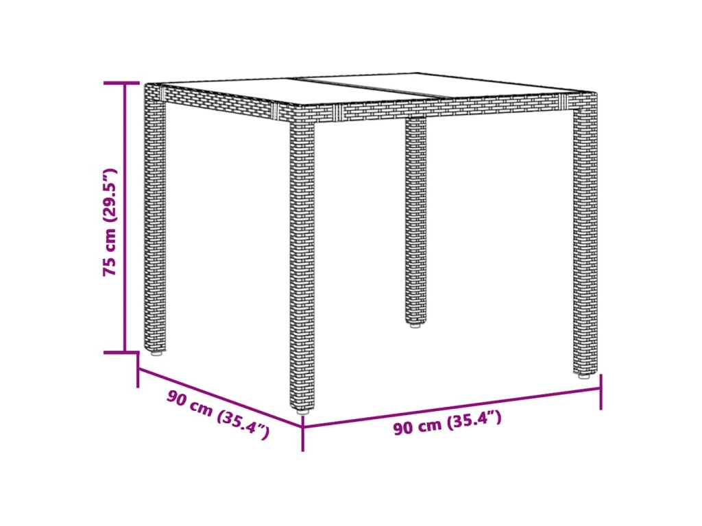 - Skleněná deska stolu: Deska venkovního stolu je zhotovena ze silného a odolného tvrzeného skla, takže ji snadno očistíte vlhkým hadříkem a zároveň do vašeho venkovního prostoru vnese nádech elegance.