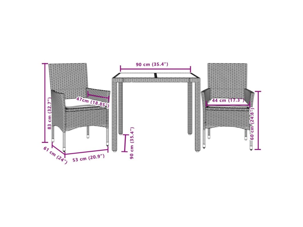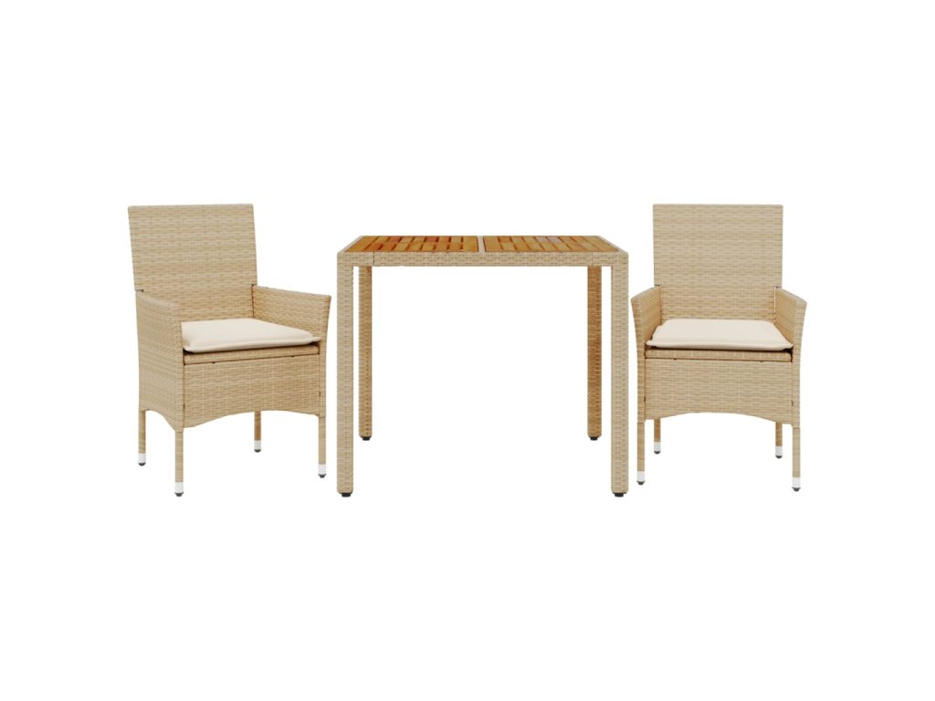 - Materiál: PE ratan, práškově lakovaná ocel, masivní akáciové dřevo s olejovou povrchovou úpravou
