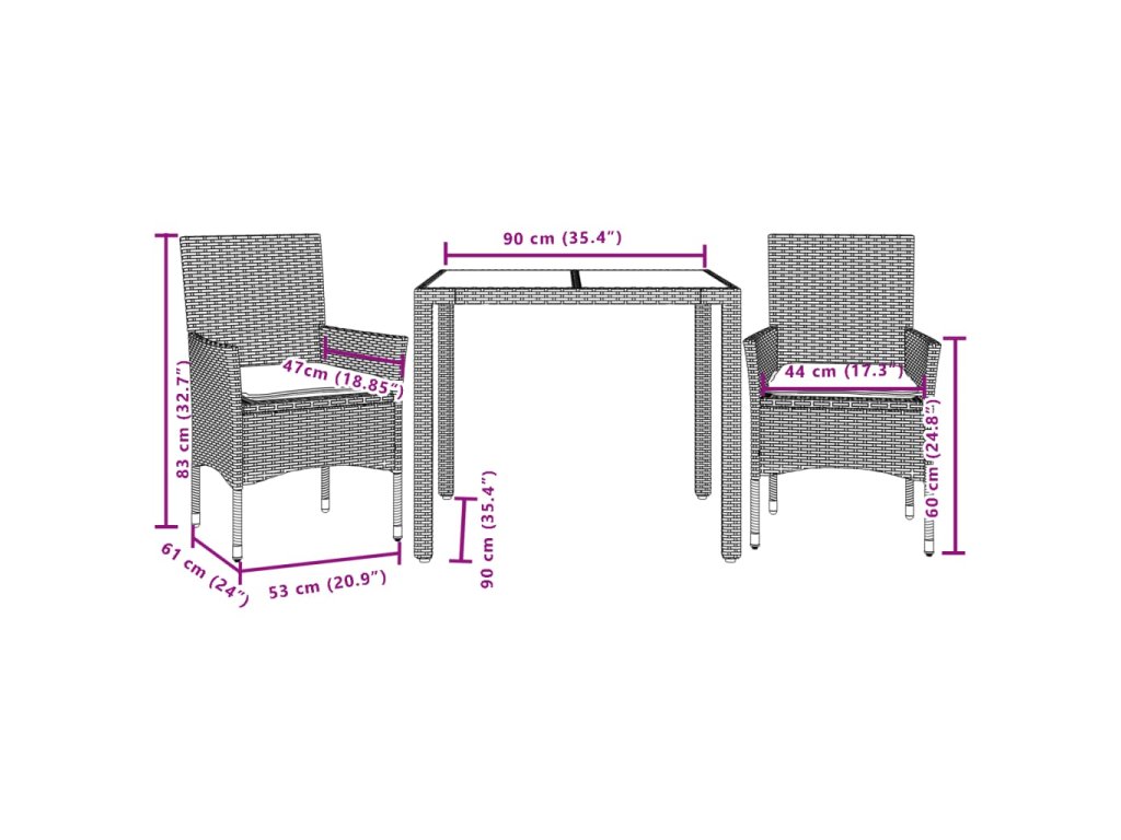 - Materiál: PE ratan, práškově lakovaná ocel, masivní akáciové dřevo s olejovou povrchovou úpravou