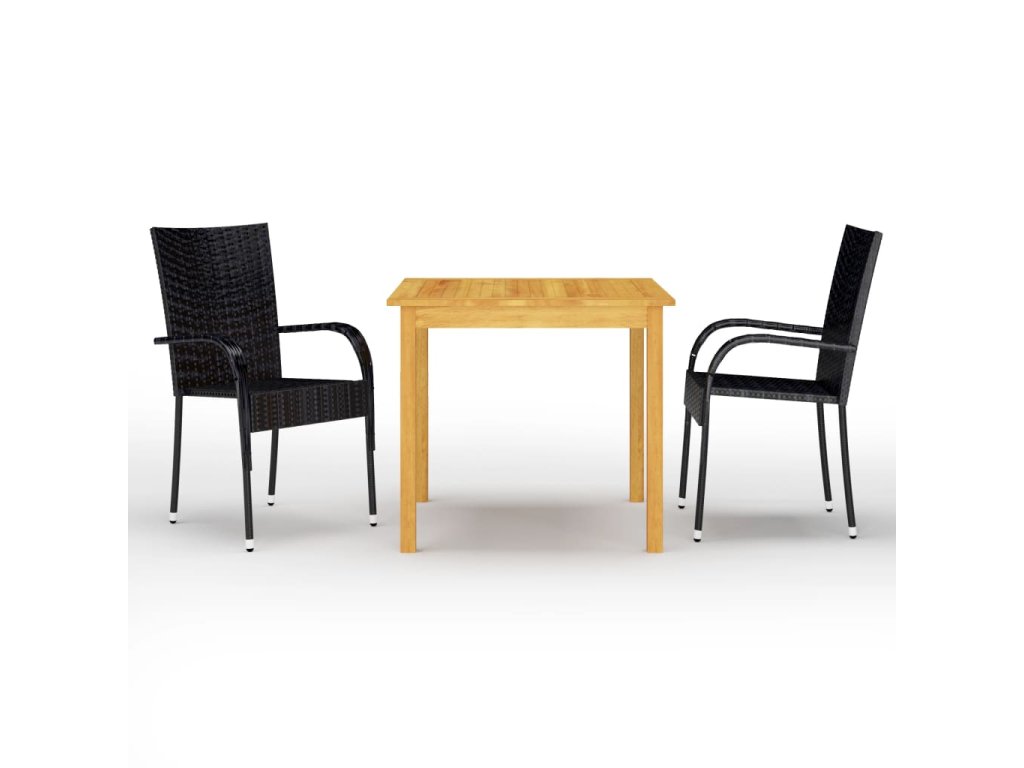 Jídelní stůl je zhotovený z masivního akáciového dřeva s olejovaným povrchem, takže je stabilní, odolný a nenáročný na údržbu. Zahradní židle mají rám z práškově lakované oceli, opletený PE ratanem, který výborně vzdoruje klimatickým vlivům. Dlouho vám proto vydrží a snadno je očistíte. Jídelní židle mají také lehkou konstrukci a lze je stohovat, aby vám zbytečně nepřekážely, když je zrovna nepoužíváte.