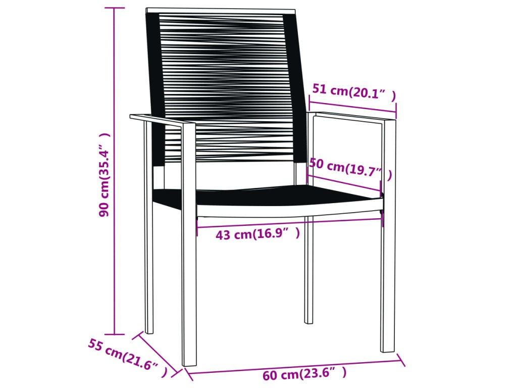 - Materiál: dutý PVC ratan, práškově lakovaná ocel