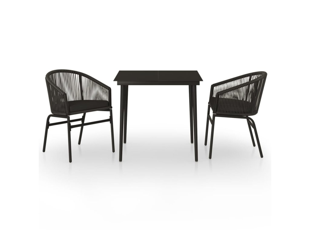 Zahradní jídelní set má práškově lakovaný ocelový rám, takže je robustní a stabilní a ideální pro venkovní použití. Hladká skleněná deska stolu se snadno čistí vlhkým hadříkem a skvěle vám poslouží k podávání jídla a pití nebo k vystavení různých dekorativních předmětů. Židle jsou vyrobené z PVC ratanu, jsou proto stabilní a výborně vzdorují UV záření i špatnému počasí. Každá z nich je navíc opatřená odnímatelnou hustě polstrovanou poduškou, a zpříjemní vám tak váš odpočinek.