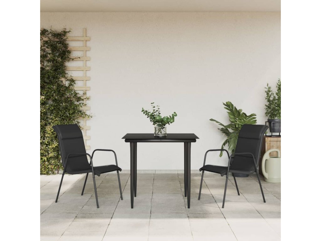 - Stabilní rám: Židle a stůl mají konstrukci z práškově lakované oceli, takže jsou pevné a stabilní.