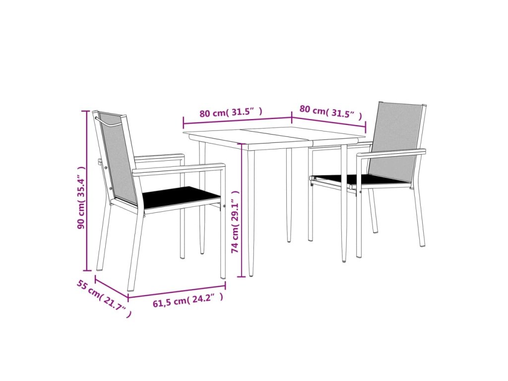 - Robustní a stabilní rám: Jelikož má ocelové rámy, je tento jídelní set robustní a stabilní pro každodenní venkovní použití.