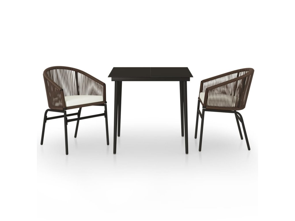 Zahradní jídelní set má práškově lakovaný ocelový rám, takže je robustní a stabilní a ideální pro venkovní použití. Hladká skleněná deska stolu se snadno čistí vlhkým hadříkem a skvěle vám poslouží k podávání jídla a pití nebo k vystavení různých dekorativních předmětů. Židle jsou vyrobené z PVC ratanu, jsou proto odolné a výborně vzdorují UV záření i špatnému počasí. Každá z nich je navíc opatřená odnímatelnou hustě polstrovanou poduškou, a zpříjemní vám tak váš odpočinek.