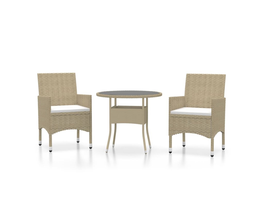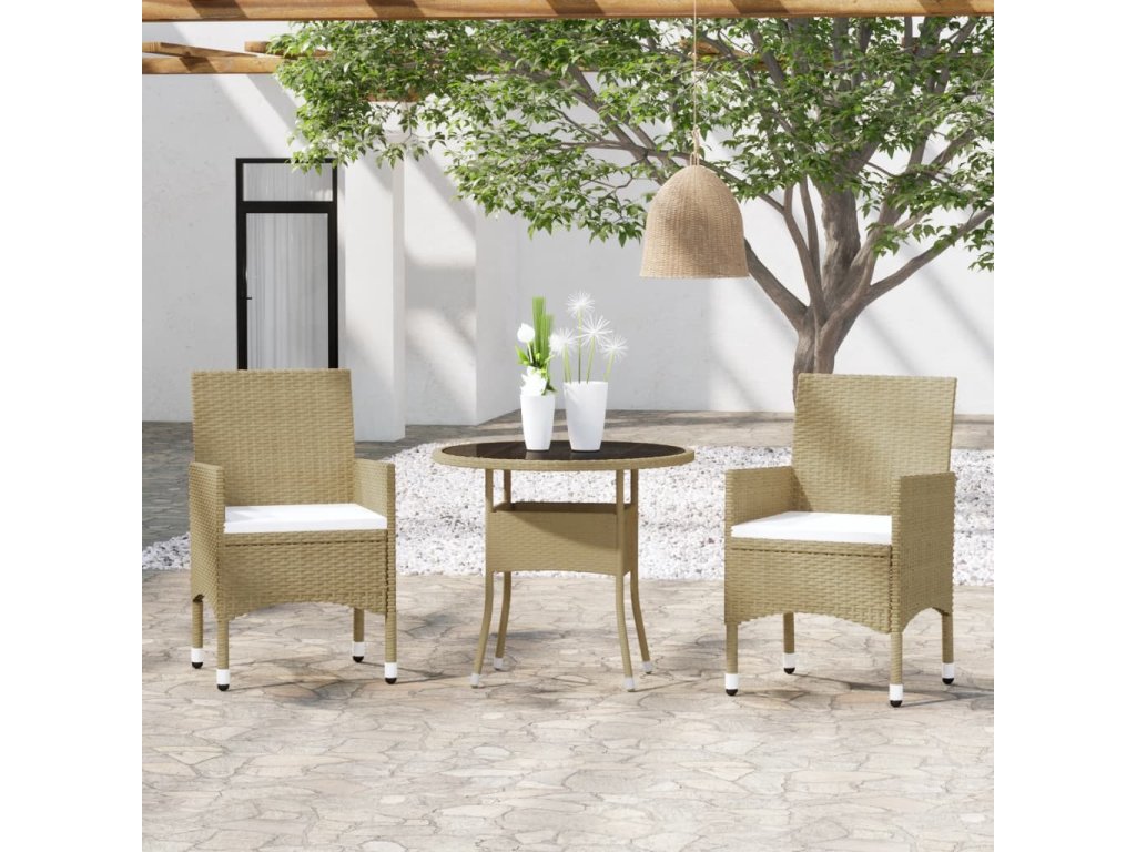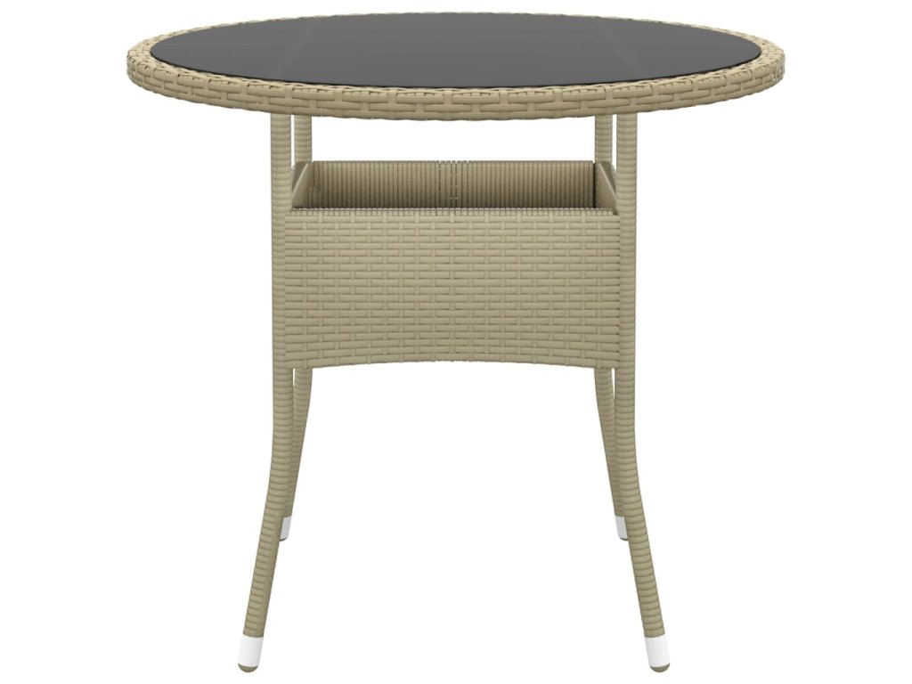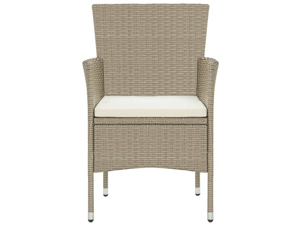 Zahradní jídelní set má práškově lakovaný ocelový rám opletený polyratanem, takže je velmi odolný. Stolní deska je zhotovena z tvrzeného skla, což usnadňuje její čištění. Hustě polstrované podušky vám navíc při sezení poskytnou maximální pohodlí.