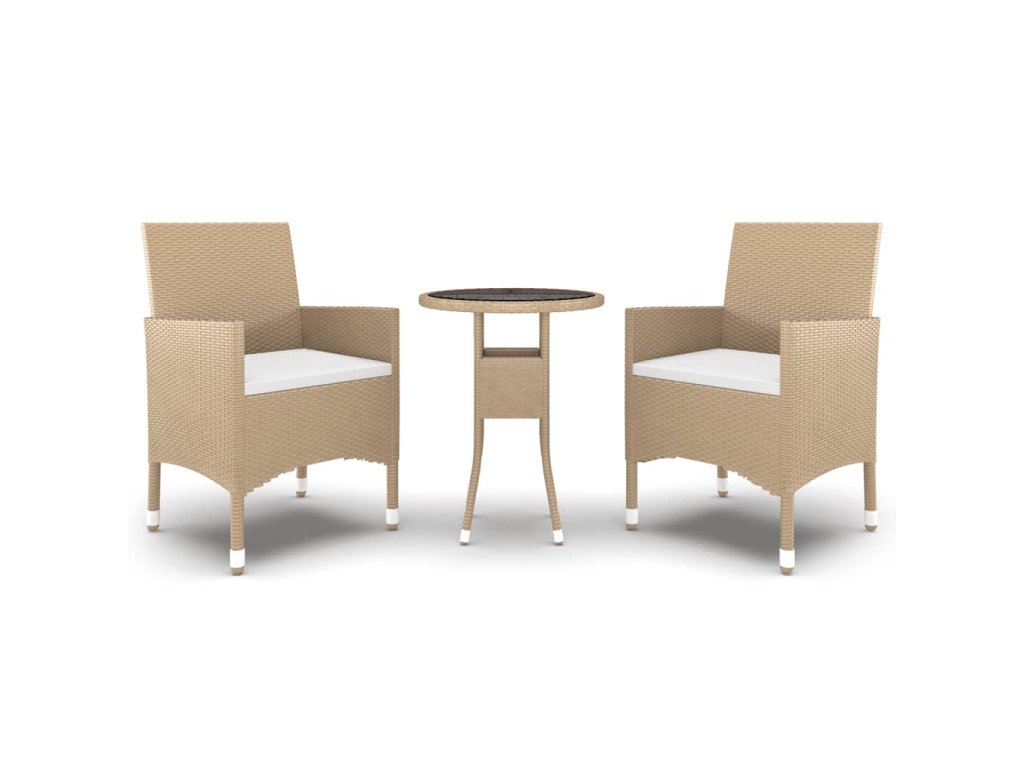 - Pevný rám: Stůl a židle mají práškově lakovaný ocelový rám opletený PE ratanem s UV ochranou, který navíc skvěle odolává povětrnostním vlivům, takže jsou odolné a stabilní.