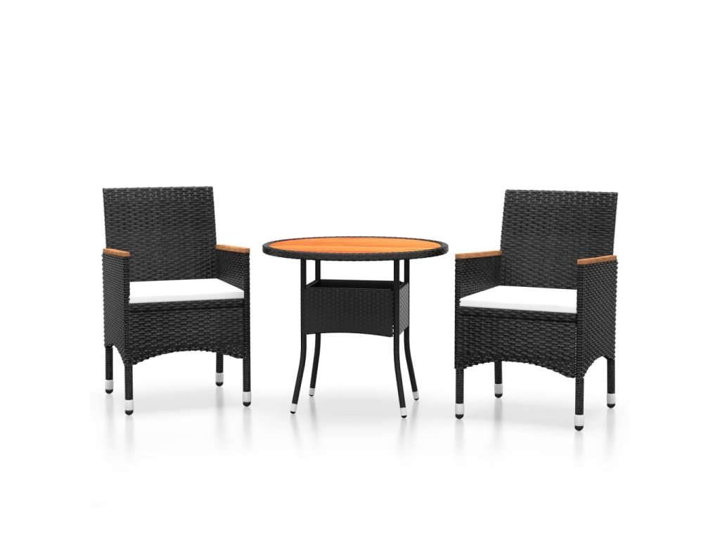 Zahradní jídelní set má práškově lakovaný ocelový rám opletený polyratanem, takže je velmi odolný. Stolní deska je zhotovená z masivního akáciového dřeva, což je tvrdé dřevo s hustou strukturou. Silně polstrované podušky vám navíc při sezení poskytnou maximální pohodlí.