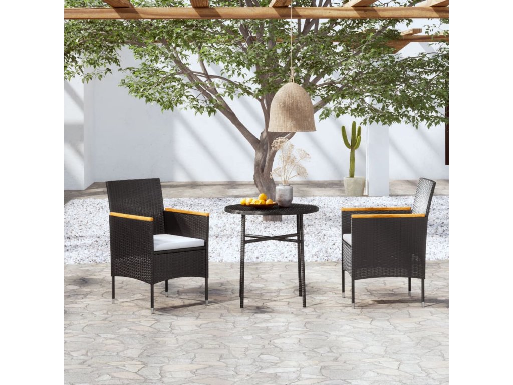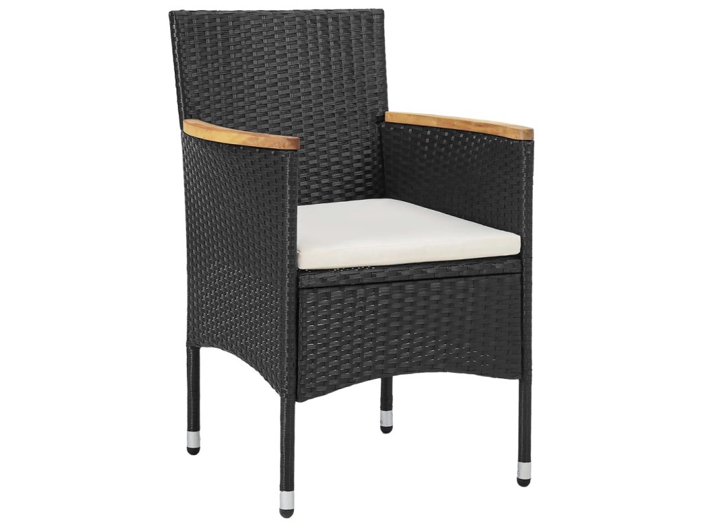 Praktický zahradní jídelní set má práškově lakovaný ocelový rám opletený PE ratanem, je tedy odolný a skvěle se hodí pro každodenní používání. Lehká konstrukce usnadňuje přemisťování všech dílů tohoto setu. Stůl vám poslouží zejména k odložení nápojů a občerstvení, které tak budete mít pěkně po ruce. Židle mají zaoblená opěradla a područky pro lepší ergonomický tvar, zajistí vám proto při sezení maximální pohodlí. Součástí balení jsou navíc i silně polstrované podušky, které vám poskytnou větší oporu. Potah je vybaven zipem, dá se tedy snadno sejmout a vyprat.