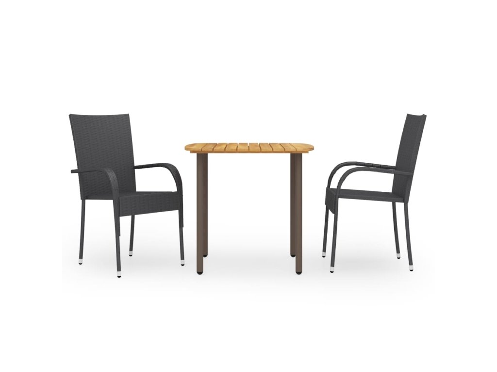 Jídelní stůl je vyrobený z masivního akáciového dřeva a odolné oceli, takže je pevný a stabilní. Olejem napuštěný povrch se hodí i pro venkovní použití. Jídelní židle mají ocelový rám opletený PE ratanem, který výborně vzdoruje klimatickým vlivům, jsou proto robustní a snadno se čistí. Zahradní židle lze stohovat, abyste ušetřili místo, když je zrovna nepoužíváte.