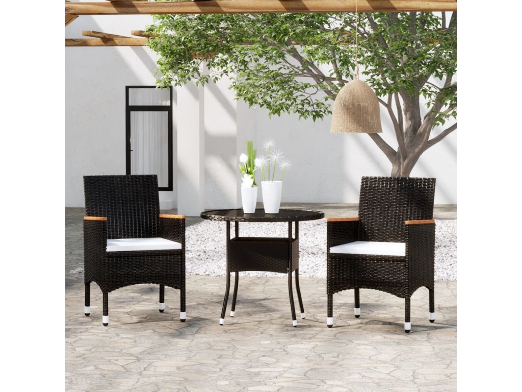 Zahradní jídelní set má práškově lakovaný ocelový rám opletený polyratanem, takže je velmi odolný. Stolní deska je zhotovena z tvrzeného skla, což usnadňuje její čištění. Hustě polstrované podušky vám navíc při sezení poskytnou maximální pohodlí.