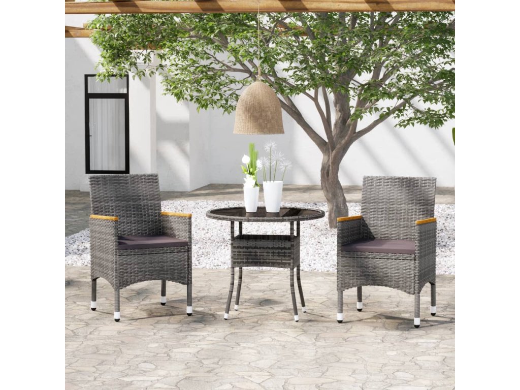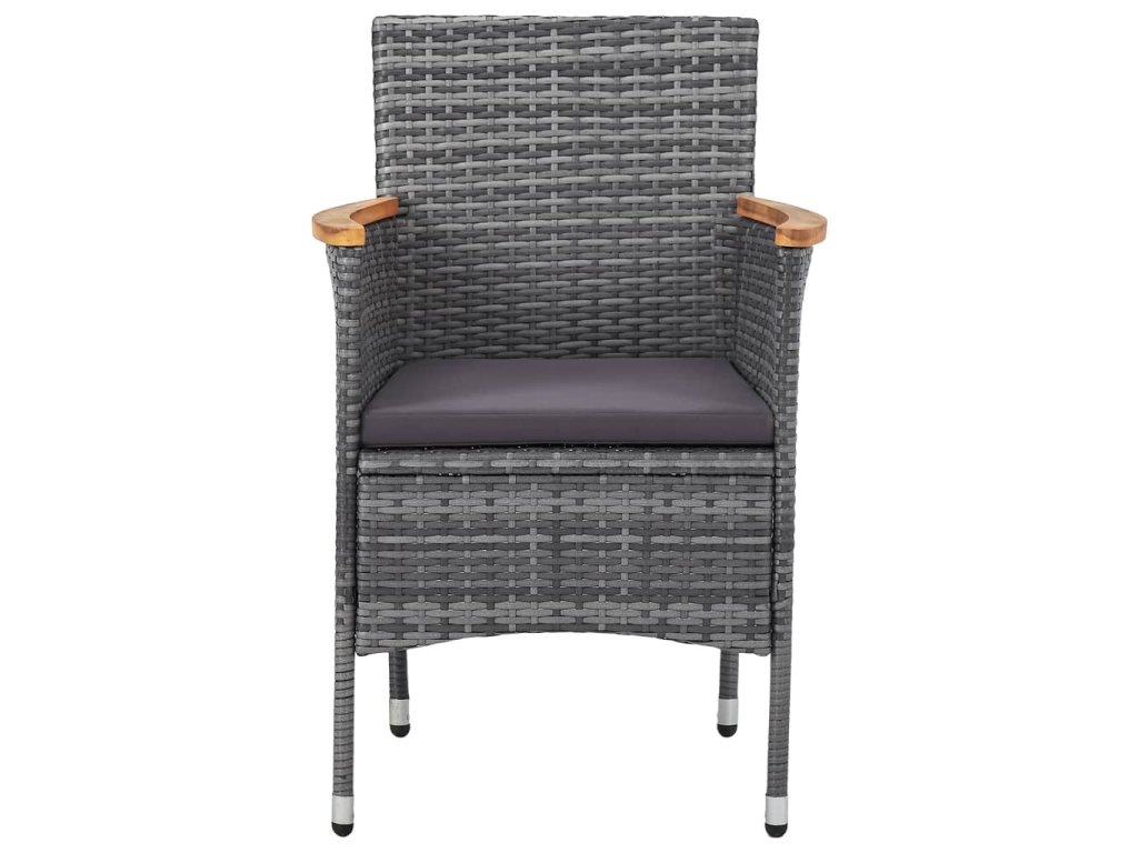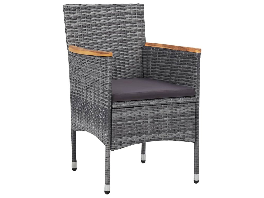 Zahradní jídelní set má práškově lakovaný ocelový rám opletený polyratanem, takže je velmi odolný. Stolní deska je zhotovena z tvrzeného skla, což usnadňuje její čištění. Hustě polstrované podušky vám navíc při sezení poskytnou maximální pohodlí.