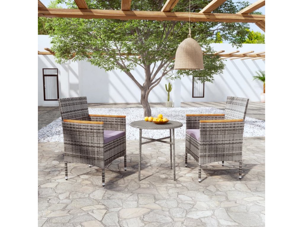 Praktický zahradní jídelní set má práškově lakovaný ocelový rám opletený PE ratanem, je tedy odolný a skvěle se hodí pro každodenní používání. Lehká konstrukce usnadňuje přemisťování všech dílů tohoto setu. Stůl vám poslouží zejména k odložení nápojů a občerstvení, které tak budete mít pěkně po ruce. Židle mají zaoblená opěradla a područky pro lepší ergonomický tvar, zajistí vám proto při sezení maximální pohodlí. Součástí balení jsou navíc i silně polstrované podušky, které vám poskytnou větší oporu. Potah je vybaven zipem, dá se tedy snadno sejmout a vyprat.