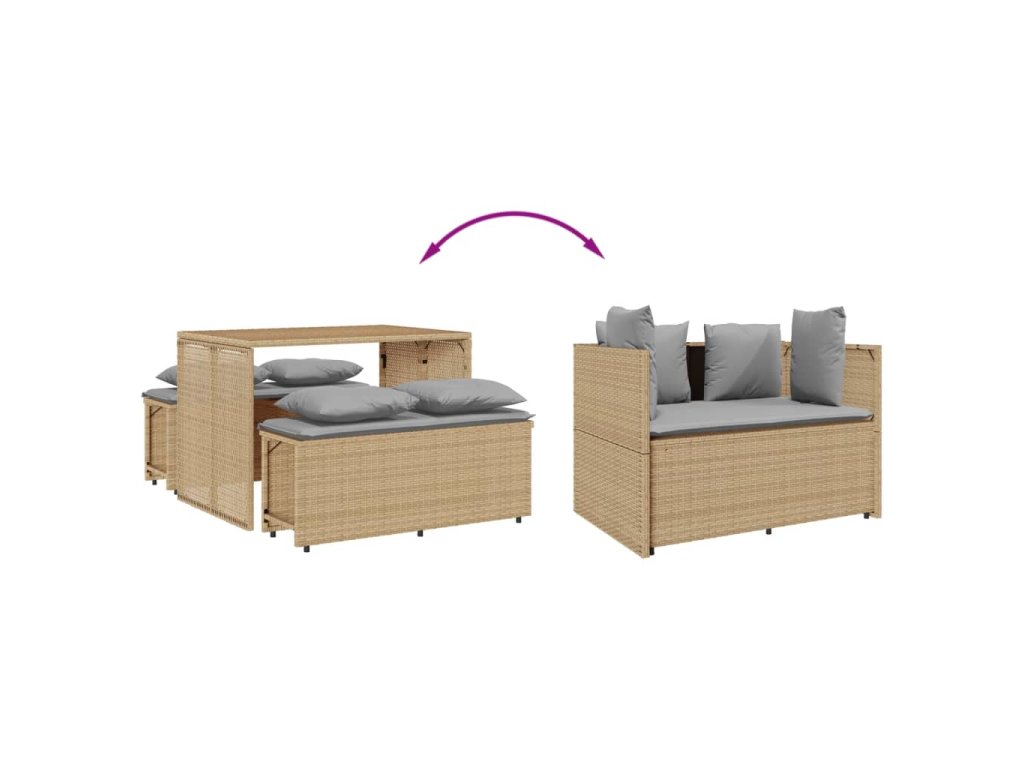 - Pohodlné sezení: Tento venkovní nábytek se silně polstrovanými poduškami a polštáři nabízí pohodlné sezení.
