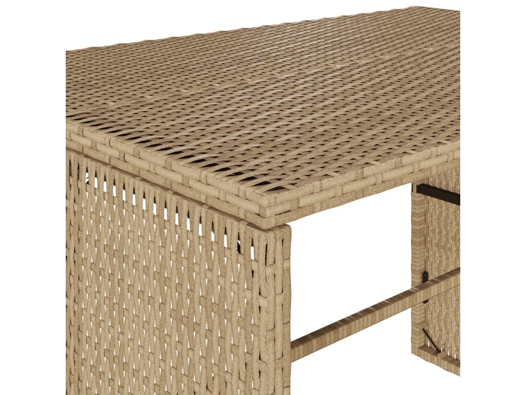 - Odolný materiál: PE ratan neboli polyratan je pevný syntetický materiál s nízkými nároky na údržbu, který vypadá jako přírodní ratan. Je lehký, snadno se čistí a běžně se používá pro venkovní nábytek díky své dlouhé životnosti a odolnosti vůči povětrnostním vlivům.