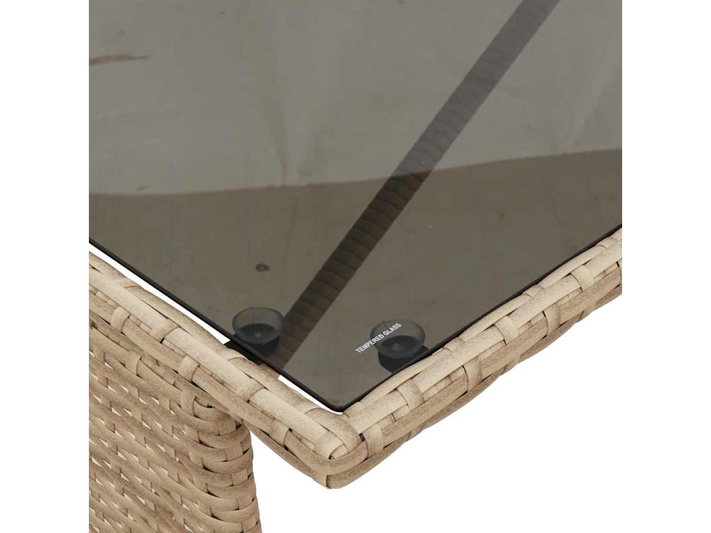 - Skleněná deska stolu: Deska venkovního stolu je zhotovena ze silného a odolného tvrzeného skla, takže ji snadno očistíte vlhkým hadříkem a zároveň do vašeho venkovního prostoru vnese nádech elegance.