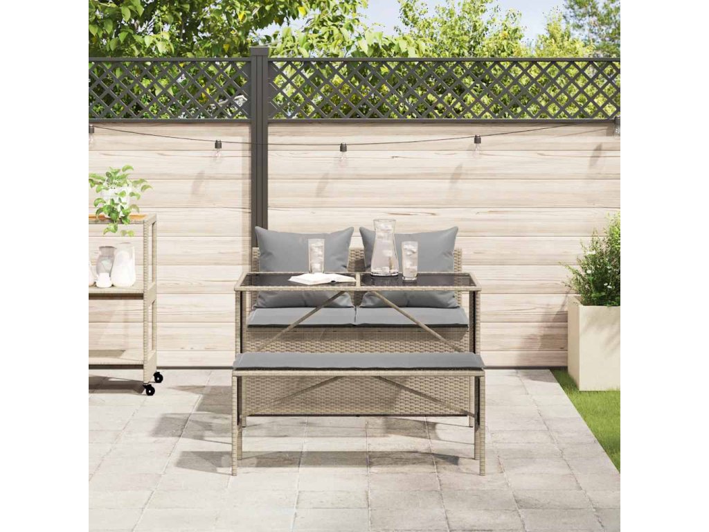 - Materiál: PE ratan, práškově lakovaná ocel, tvrzené sklo