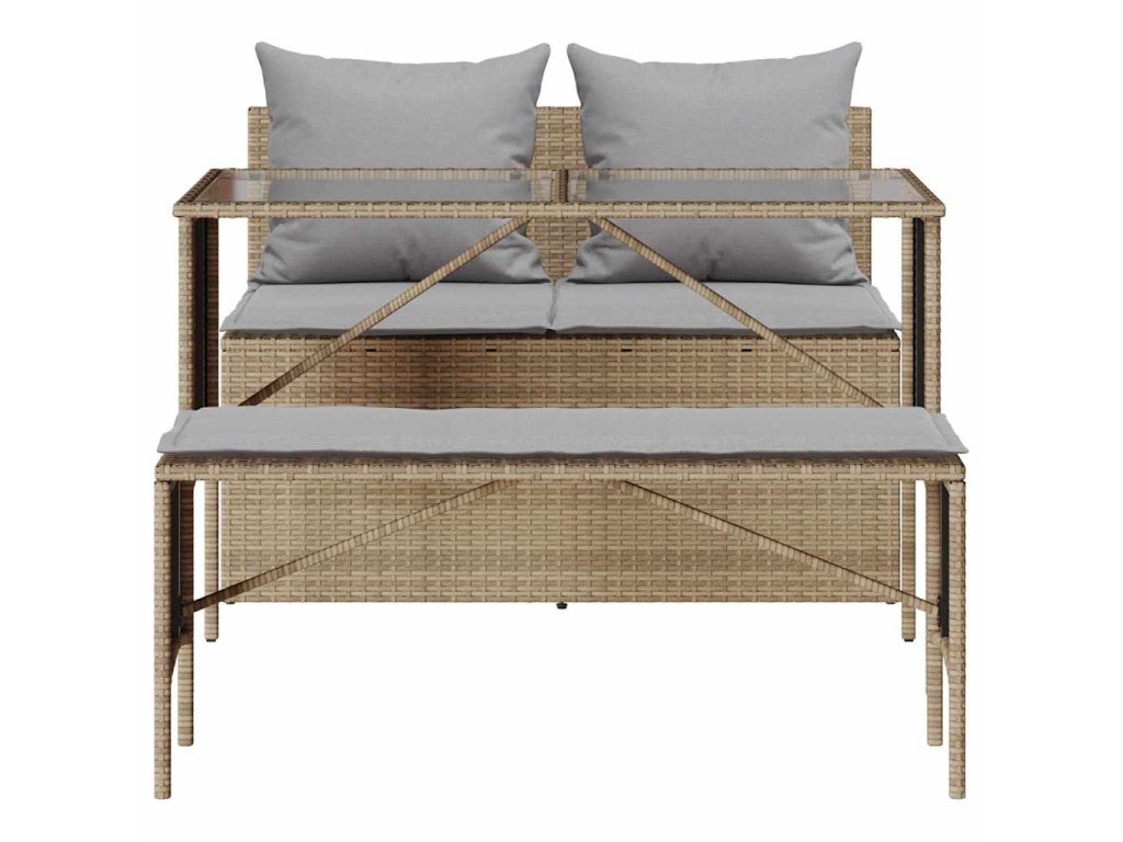 - Pohodlné sezení: Tento venkovní nábytek se silně polstrovanými poduškami a polštáři nabízí pohodlné sezení.