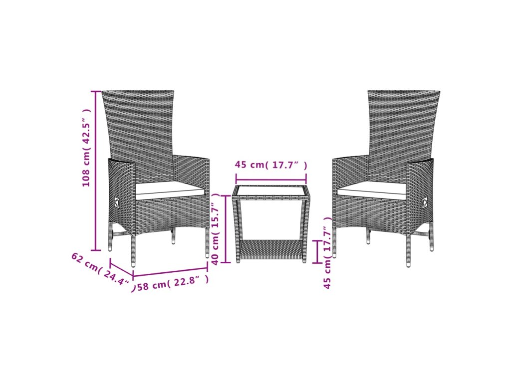 - Rozměry sezení: 58 x 62 x 108 cm (Š x H x V)