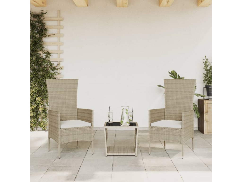- Materiál: PE ratan, práškově lakovaná ocel, tvrzené sklo