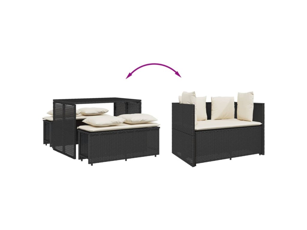 - Pohodlné sezení: Tento venkovní nábytek se silně polstrovanými poduškami a polštáři nabízí pohodlné sezení.