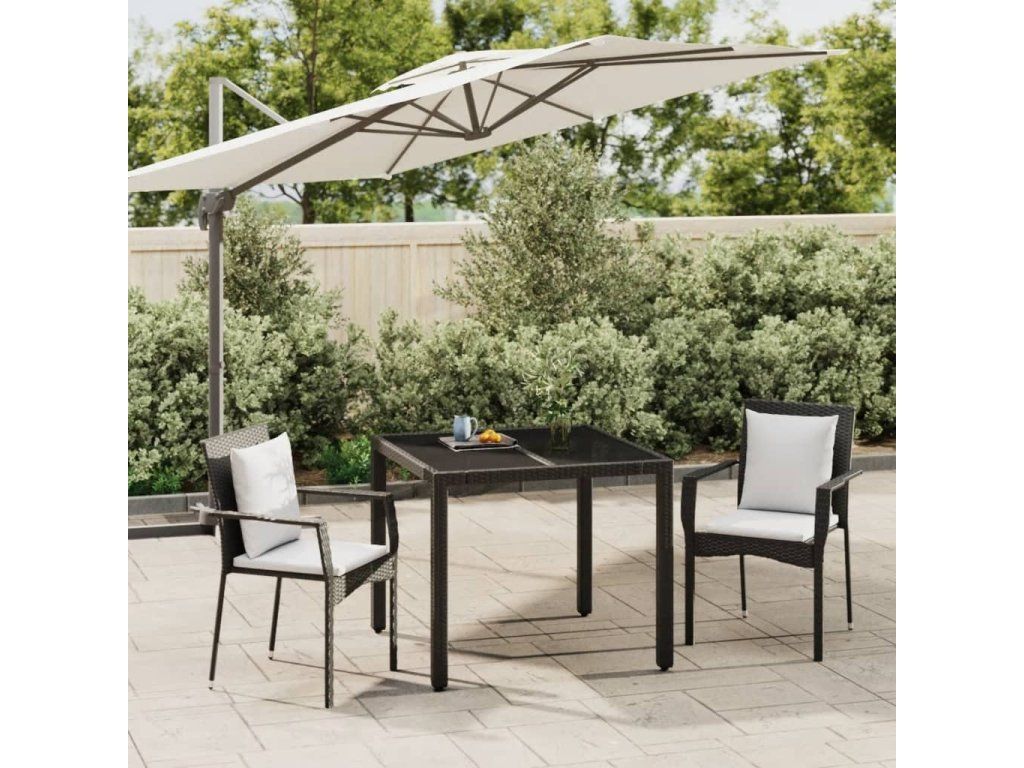 - Praktická stolní deska: Hladká stolní deska zahradního stolu je zhotovena z tvrzeného skla, které snadno očistíte vlhkým hadříkem. Robustní deska stolu se výtečně hodí k servírování občerstvení a nápojů nebo k vystavení různých dekorativních předmětů.