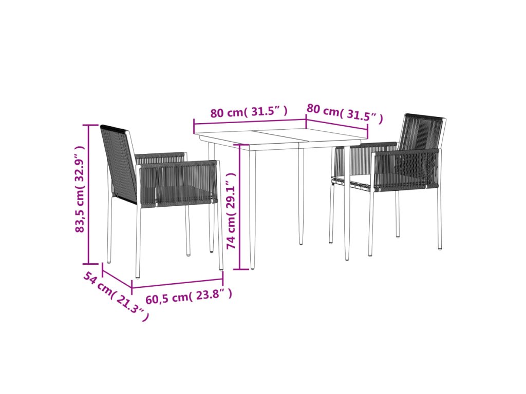- Robustní a stabilní rám: Jelikož má ocelové rámy, je tento jídelní set robustní a stabilní pro každodenní venkovní použití.