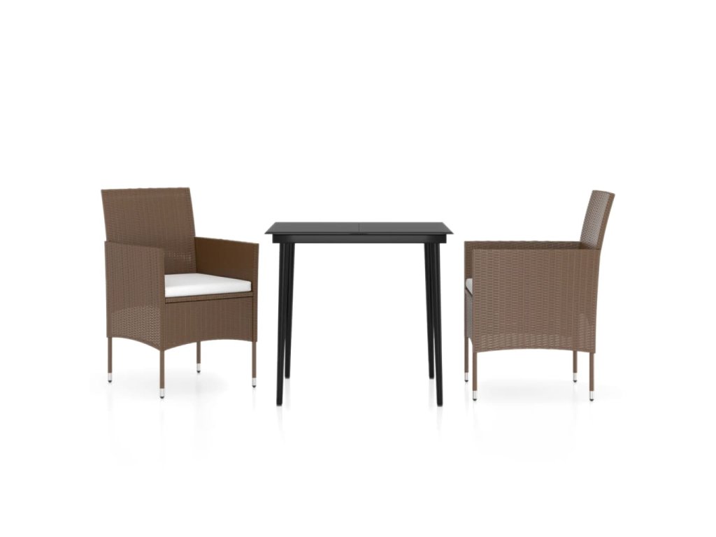 Stůl a židle mají rám z práškově lakované oceli, jsou tedy robustní, stabilní a skvěle se hodí pro každodenní venkovní použití. Židle jsou zhotoveny z voděodolného PE ratanu, takže se snadno čistí a můžete je klidně používat každý den. Hladkou skleněnou desku stolu jednoduše očistíte vlhkým hadříkem a výborně vám poslouží k servírování občerstvení a nápojů či k vystavení různých dekorativních předmětů.