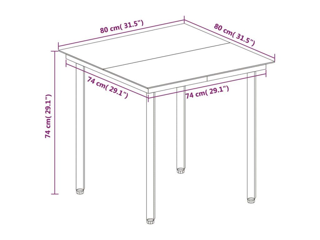 - Rozměry stolu: 80 x 80 x 74 cm (D x Š x V)