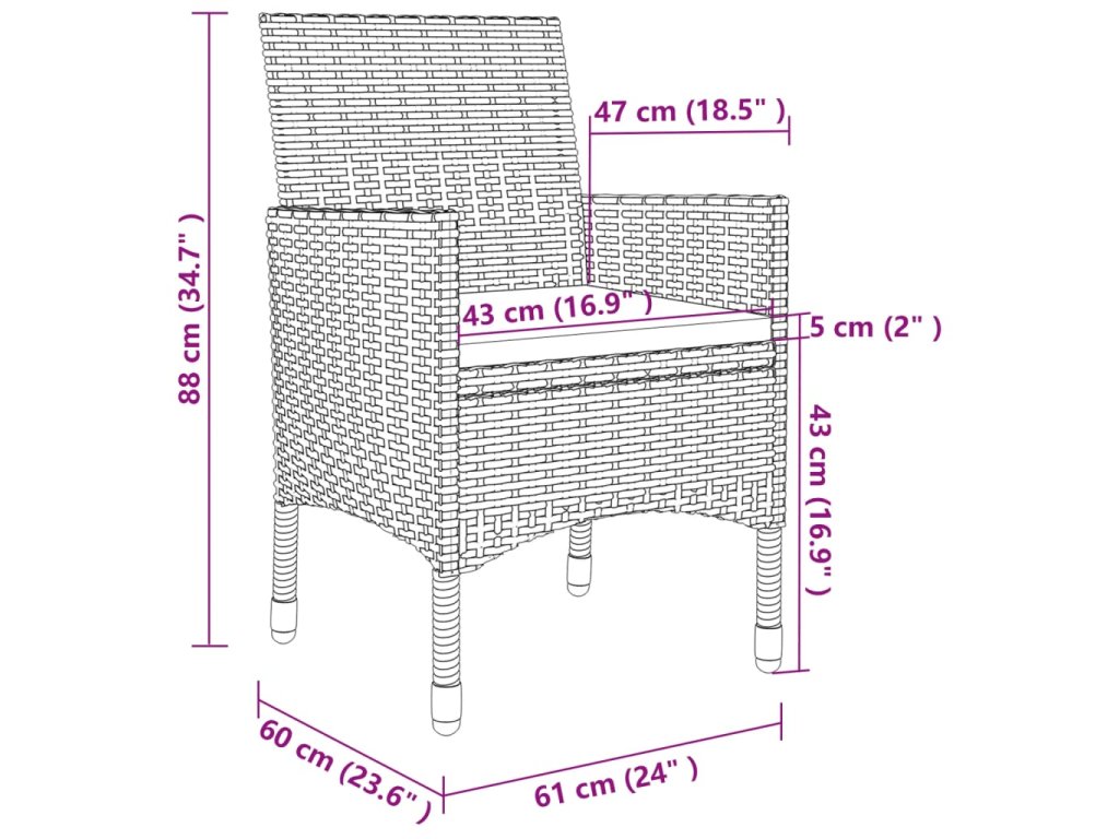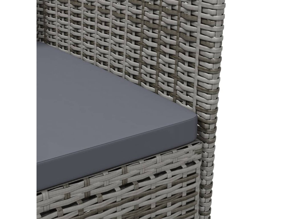 Zahradní jídelní set má ocelový rám s práškovým nástřikem, který stolu i židlím zaručuje stabilitu a dlouhou životnost. Set venkovního nábytku je zhotoven z PE ratanu odolného vůči povětrnostním vlivům, takže se snadno čistí, stejně jako silné odnímatelné podušky. Ty navíc zvyšují pohodlí při sezení.