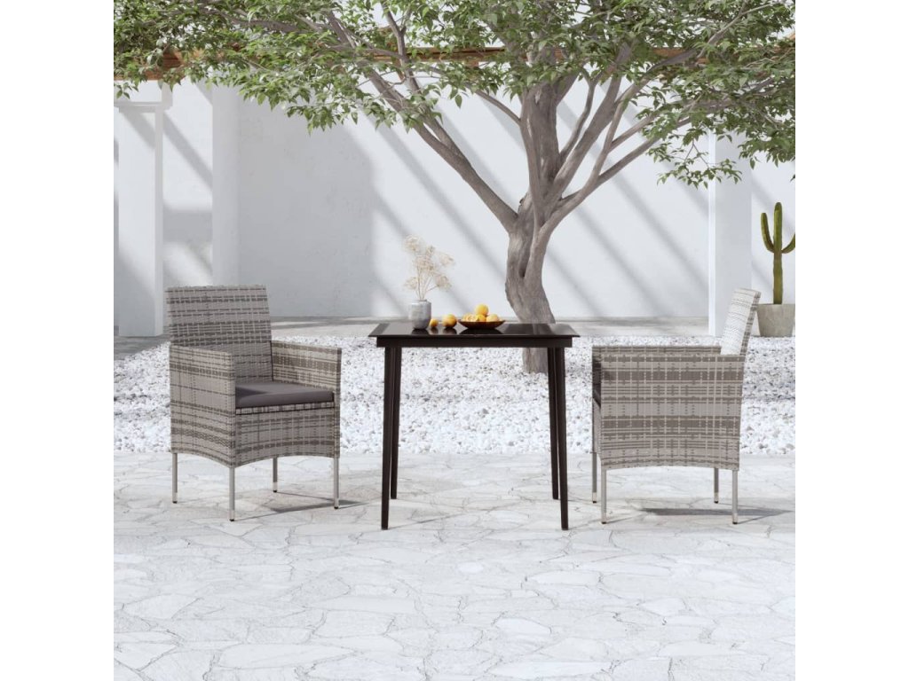 Stůl a židle mají rám z práškově lakované oceli, jsou tedy robustní, stabilní a skvěle se hodí pro každodenní venkovní použití. Židle jsou zhotoveny z voděodolného PE ratanu, takže se snadno čistí a můžete je klidně používat každý den. Hladkou skleněnou desku stolu jednoduše očistíte vlhkým hadříkem a výborně vám poslouží k servírování občerstvení a nápojů či k vystavení různých dekorativních předmětů.