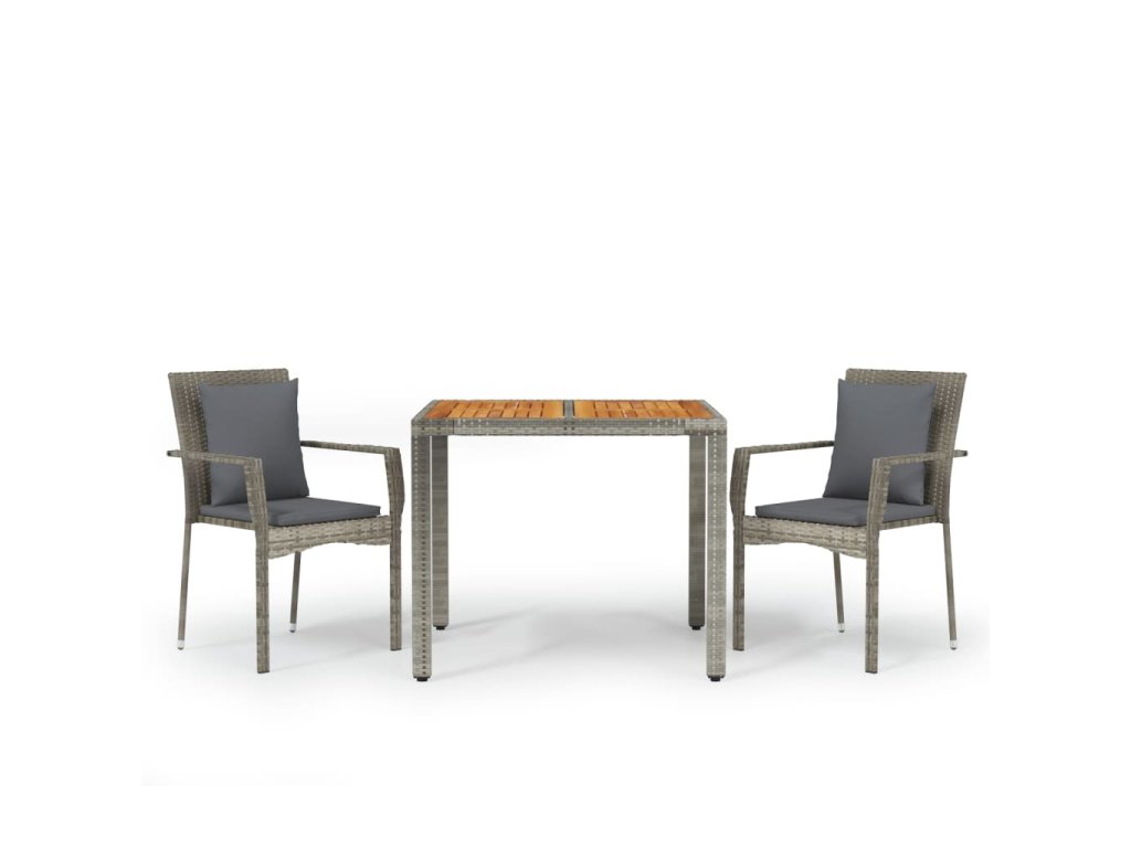 - Materiál: PE ratan, práškově lakovaná ocel, masivní akáciové dřevo s olejovou povrchovou úpravou