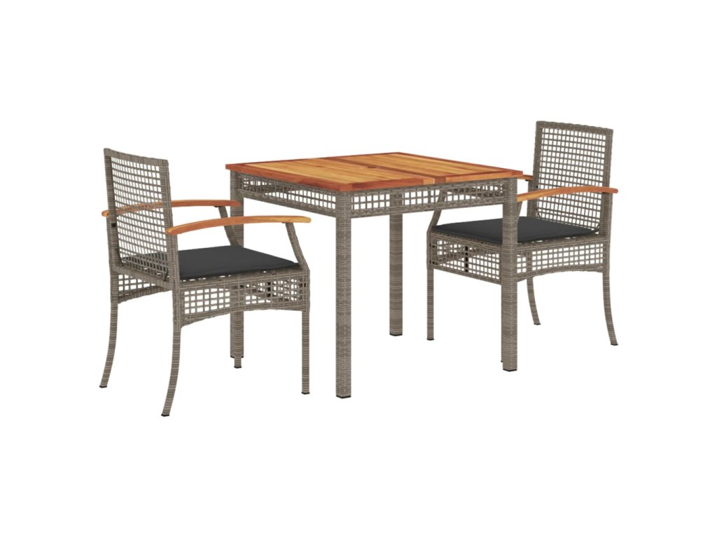 - Materiál: PE ratan, práškově lakovaná ocel, masivní akáciové dřevo s olejovou povrchovou úpravou