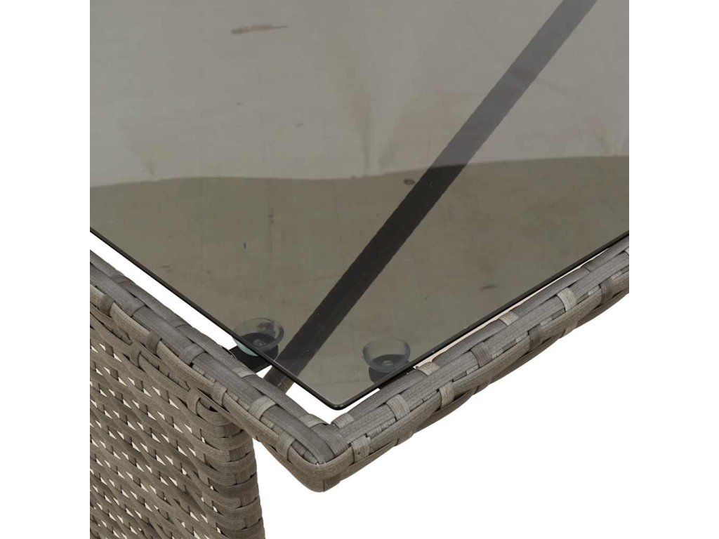 - Skleněná deska stolu: Deska venkovního stolu je zhotovena ze silného a odolného tvrzeného skla, takže ji snadno očistíte vlhkým hadříkem a zároveň do vašeho venkovního prostoru vnese nádech elegance.