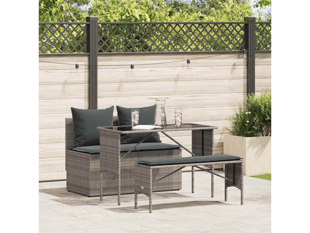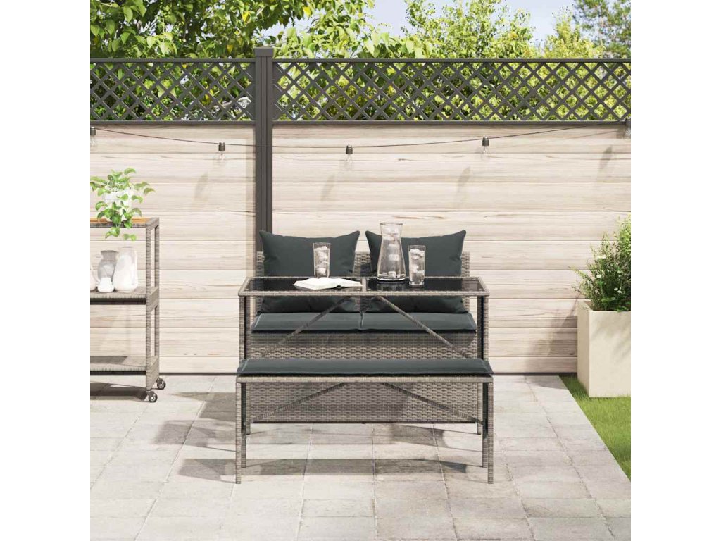 - Materiál: PE ratan, práškově lakovaná ocel, tvrzené sklo
