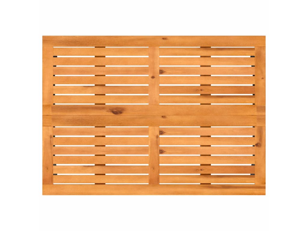 - Stabilní a snadno čistitelná stolní deska: Tento zahradní stolek má desku z akáciového dřeva, která je stabilní, odolná a snadno se čistí vlhkým hadříkem.