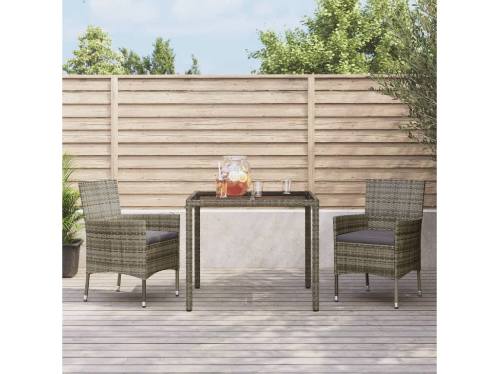 - Materiál: polyratan, práškově lakovaná ocel, tvrzené sklo