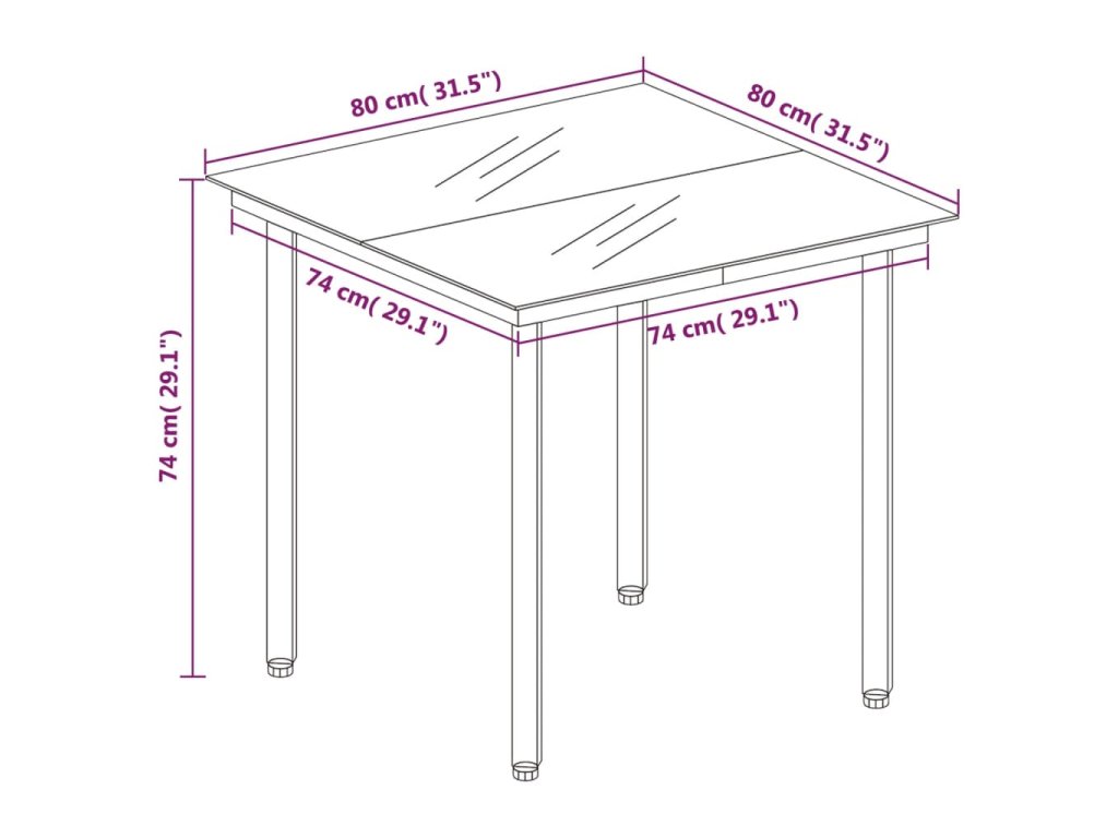 - Skleněná deska stolu: Deska venkovního stolu je zhotovena ze silného a odolného tvrzeného skla, takže ji snadno očistíte vlhkým hadříkem a zároveň do vašeho venkovního prostoru vnese nádech elegance.
