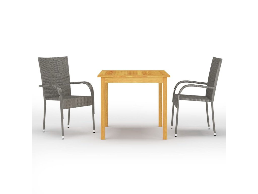 Jídelní stůl je zhotovený z masivního akáciového dřeva s olejovaným povrchem, takže je stabilní, odolný a nenáročný na údržbu. Zahradní židle mají rám z práškově lakované oceli, opletený PE ratanem, který výborně vzdoruje klimatickým vlivům. Dlouho vám proto vydrží a snadno je očistíte. Jídelní židle mají také lehkou konstrukci a lze je stohovat, aby vám zbytečně nepřekážely, když je zrovna nepoužíváte.