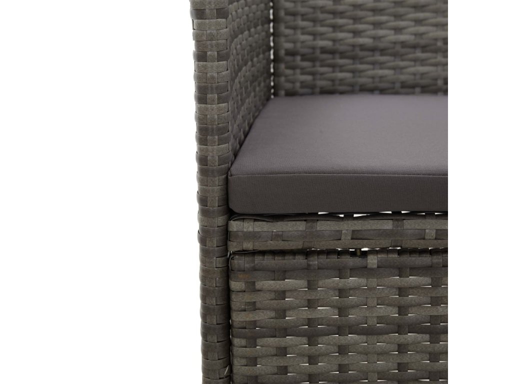Jídelní set je vyrobený z PE ratanu s pevným rámem z práškově lakované oceli, takže je klimaticky odolný a robustní. Stolní deska ze zesíleného tvrzeného skla má hladký povrch, který se snadno čistí. Každé křesílko je opatřené odnímatelnou silně polstrovanou poduškou, abyste si ve volném čase užili zaslouženého pohodlí. Všechny potahy na podušky mají zip a jsou snímatelné. Lehká konstrukce umožňuje nenáročné přesouvání, přeskupení a přenášení všech dílů sestavy.