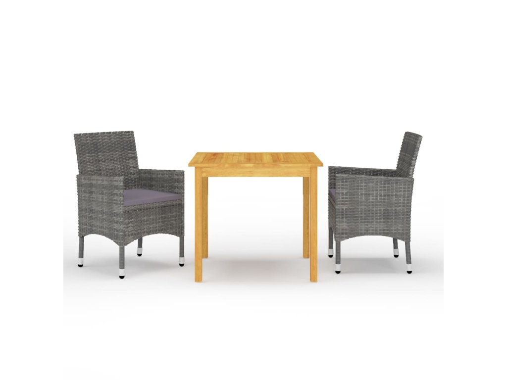 Jídelní stůl je zhotovený z masivního akáciového dřeva s olejovaným povrchem, takže je stabilní, odolný a nenáročný na údržbu. Jídelní židle mají rám z práškově lakované oceli, opletený klimaticky odolným PE ratanem, jsou tudíž odolné a snadno se čistí. Zahradní židle mají zaoblená opěradla a područky, což přispívá k většímu pohodlí, stejně jako jejich ergonomický tvar. Každé křeslo je opatřené odnímatelnou, hustě polstrovanou poduškou, která vám při odpočinku zaručí mimořádný komfort.