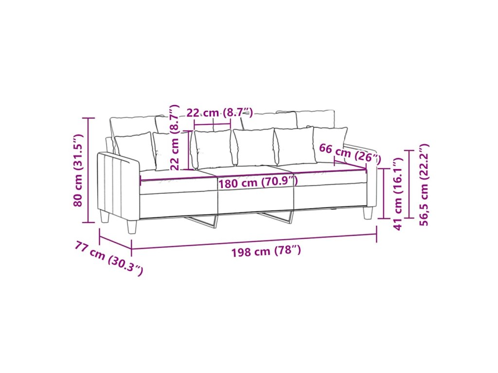 - Celkové rozměry: 198 x 77 x 80 cm (Š x H x V)