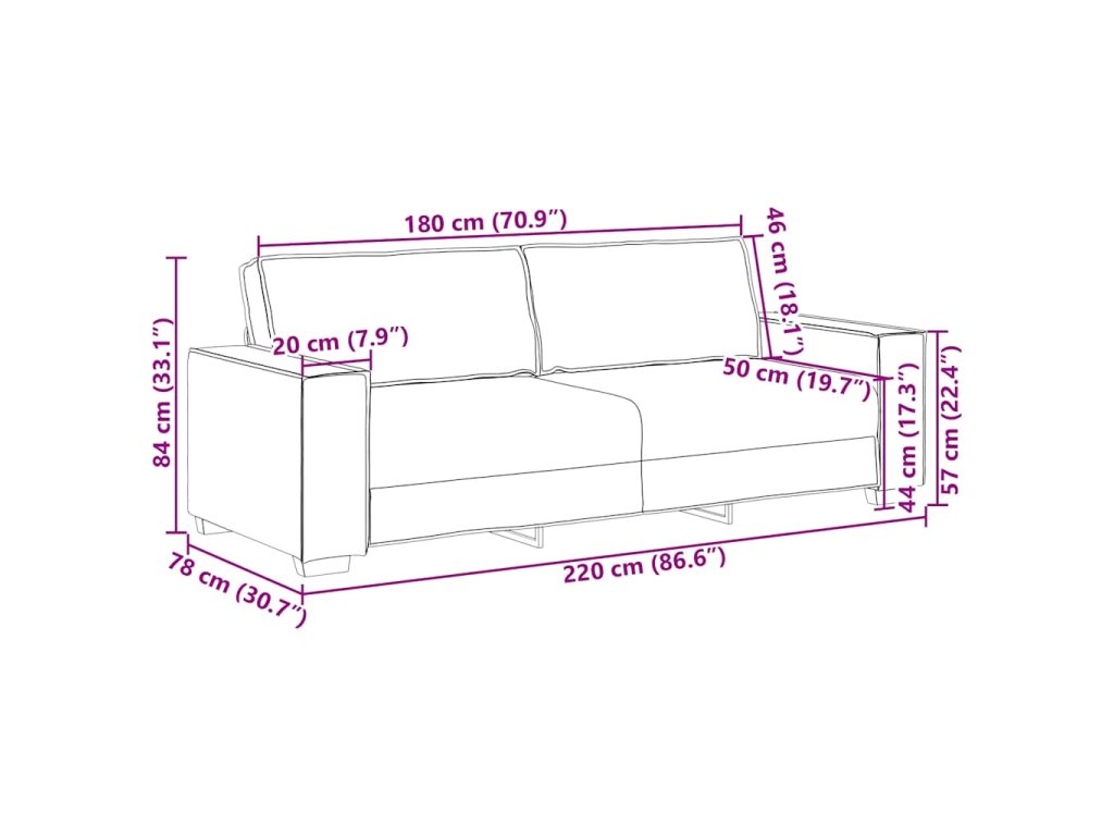 - Celkové rozměry: 220 x 78 x 84 cm (š x h x v)