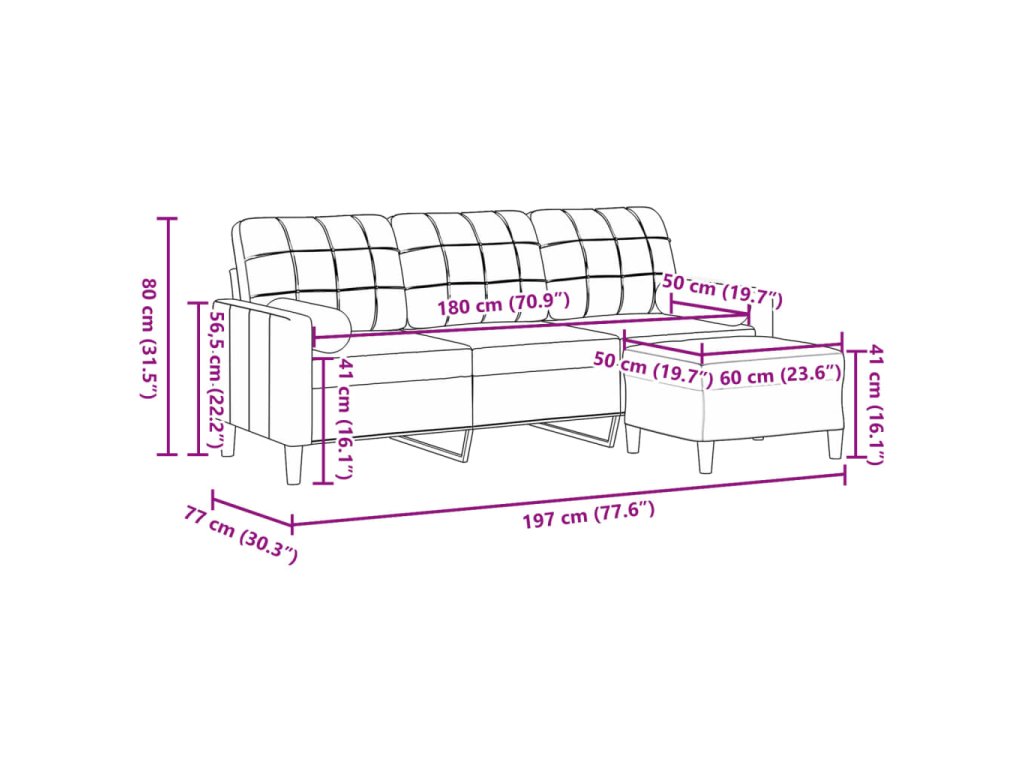 - Celkové rozměry: 197 x 77 x 80 cm (Š x H x V)