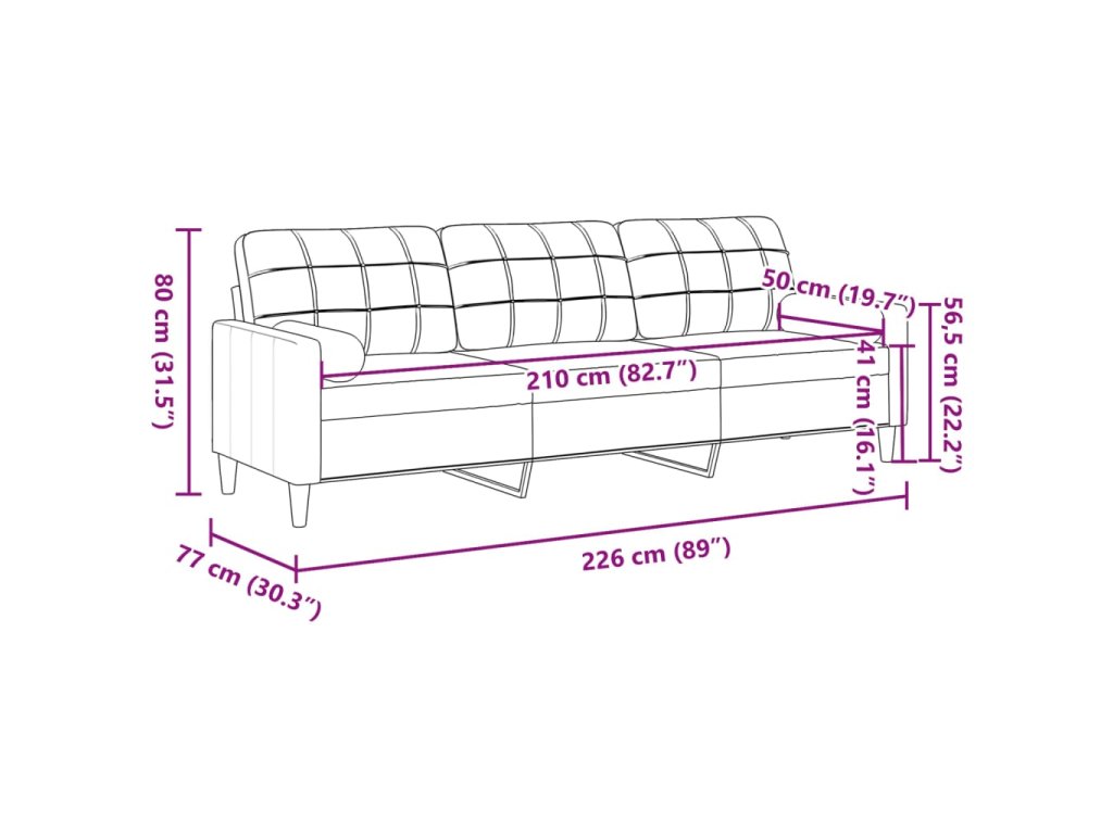 - Celkové rozměry: 226 x 77 x 80 cm (Š x H x V)