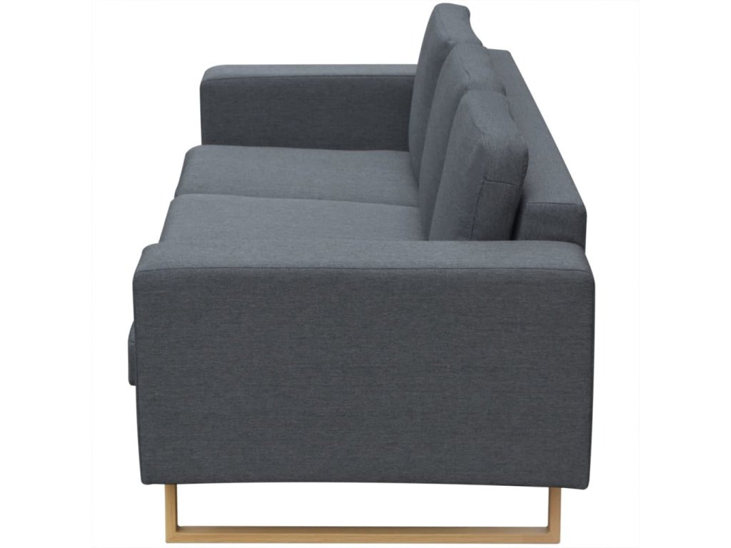 Pohovka má širokou sedací plochu a tlustě polstrované matrace pro maximální pohodlí při sezení. Je čalouněná vysoce kvalitním textilem, který je zároveň velmi rezistentní. Potahy matrací se snadno udržují v čistotě, protože se dají sejmout a vyprat v pračce. Pevný dřevěný rám a železné nohy s dekorativním vzhledem struktury dřeva přispívají k její robustní konstrukci.