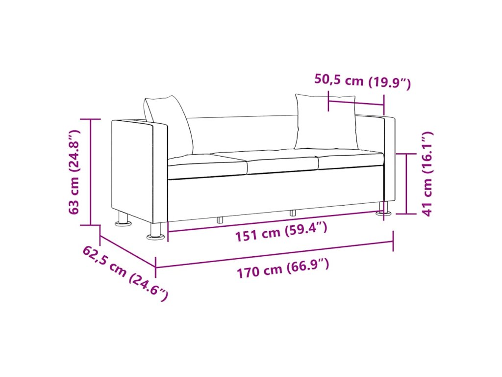 Balení obsahuje 1 x trojmístnou pohovku a 2 x volný polštář.