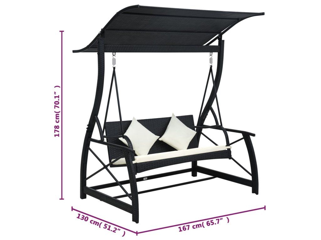 Zahradní houpačka je vyrobená z PE ratanu, který výborně vzdoruje klimatickým vlivům, snadno se proto čistí, hodně toho vydrží a můžete ji klidně používat každý den. Rám z práškově lakované oceli zajišťuje mimořádnou pevnost a odolnost lavice a ulehčuje její přesouvání. Silně polstrované podušky na sedák a opěradlo vám umožní naplno se oddat příjemnému odpočinku. Jejich potahy se dají stáhnout, aby se vám lépe čistily. Velká textilenová stříška vám poskytne naprostý stín, takže si při houpání budete moct nerušeně vychutnávat žhnoucí sluníčko i příjemný vánek.