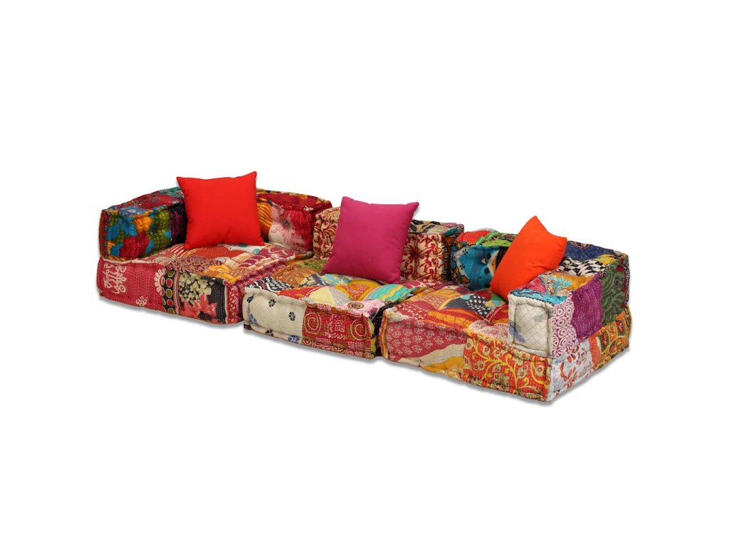 Tato všestranná pohovka se pyšní modulárním designem. Její díly můžete snadno kombinovat v různých konfiguracích a přeměnit je na gauč, postel, jednotlivá křesla nebo sedací poufy — podle toho, čemu právě dáváte přednost! Díky čalounění z bavlněné tkaniny se pohovka snadno udržuje a díky vysokému polstrování je mimořádně měkká. Barevné polštáře jsou nejen dekorativní, ale nabízí ještě více pohodlí. Tato modulární rozkládací pohovka je také ideální k odpočinku na verandě.