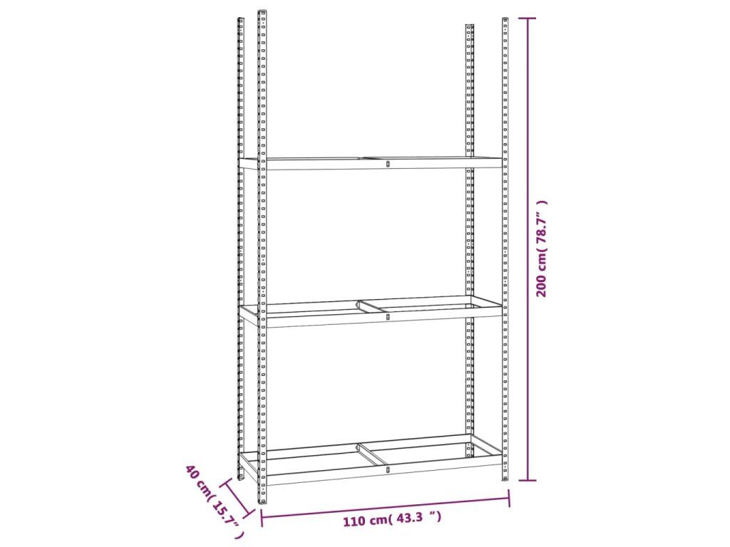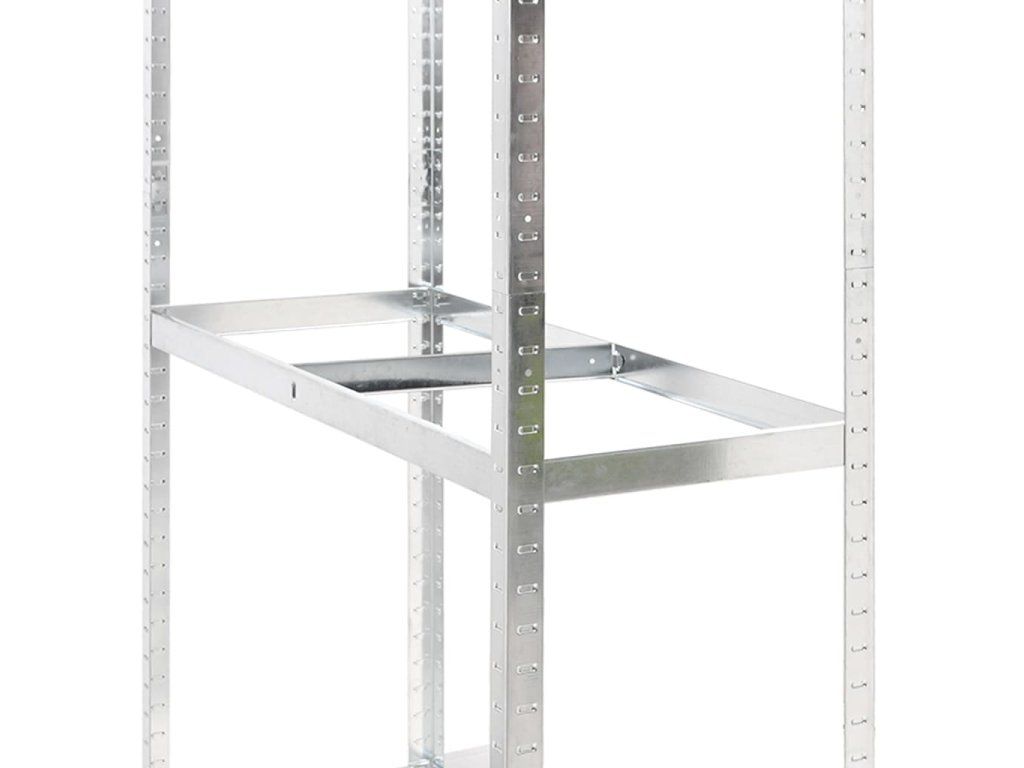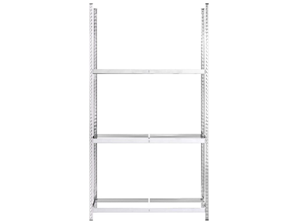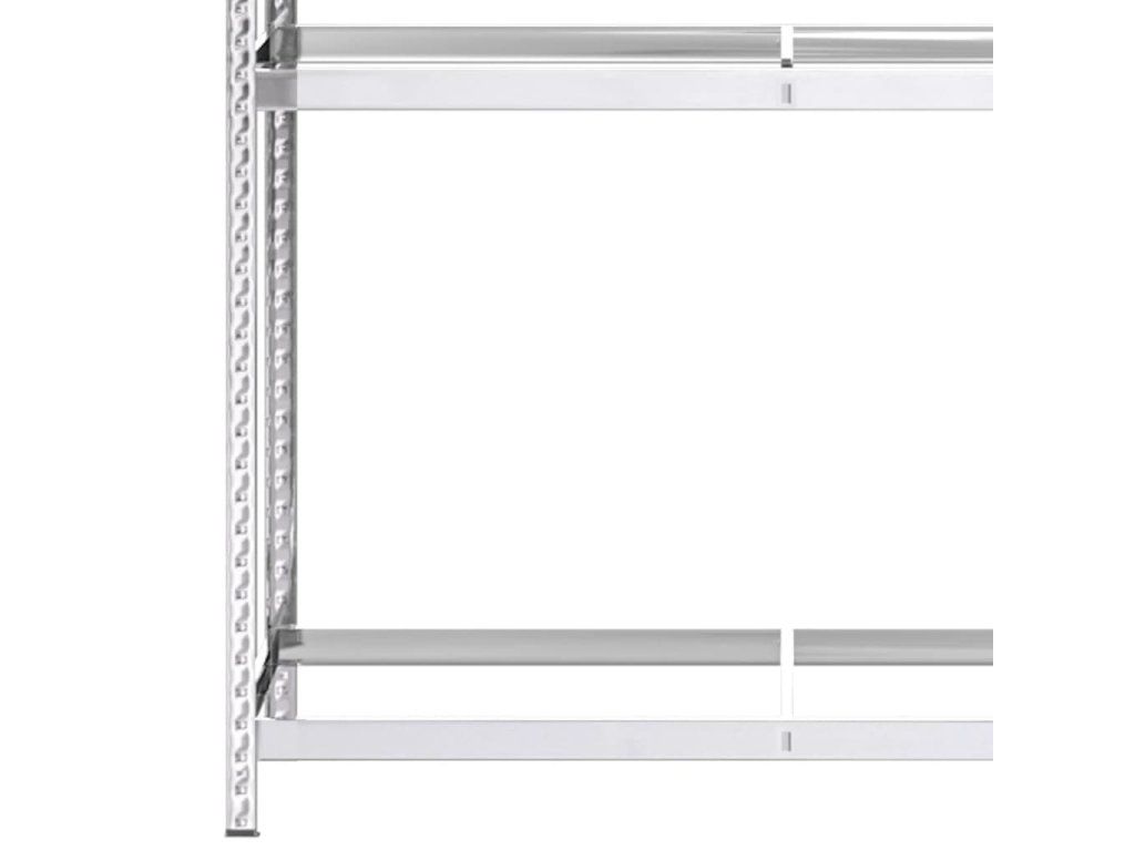 - Vysoká nosnost: Vzhledem k silnému materiálu, výztužným tyčím pod každou policí a bezšroubové konstrukci polic má regál výjimečně vysokou nosnost.